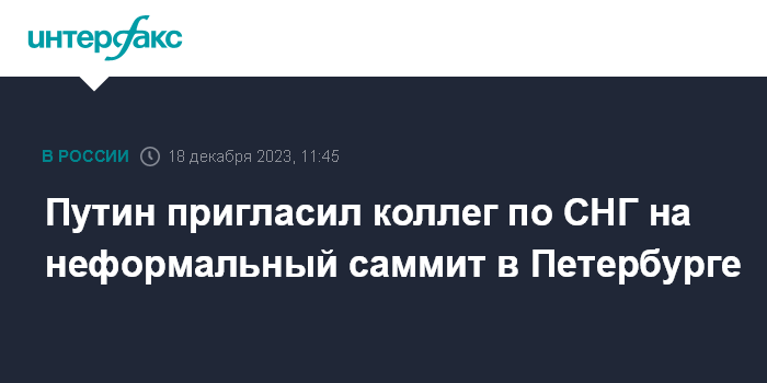 Путин пригласил коллег по СНГ на неформальный саммит в Петербурге