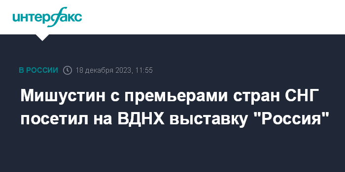 Москва. 18 декабря. INTERFAX.RU - Премьер РФ Михаил Мишустин вместе с коллегами из стран СНГ посетил выставку-форум "Россия", которая проходит на ВДНХ.