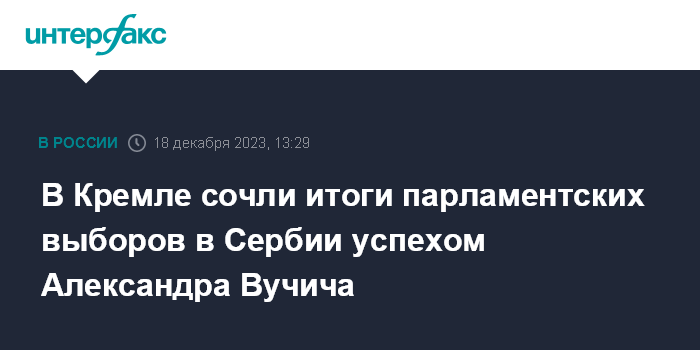 Москва. 18 декабря. INTERFAX.RU - В Кремле назвали итоги парламентских выборов в Сербии успехом действующего главы государства Александра Вучича.