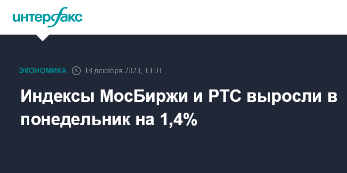 Индексы МосБиржи и РТС выросли в понедельник на 1,4%