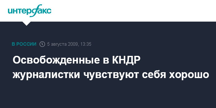 Вашингтон. 5 августа. INTERFAX.RU - Освобожденные властями КНДР американские журналистки Юна Ли и Лора Лин не испытывают никаких проблем со здоровьем, передают западные СМИ со ссылкой на высокопоставленного американского чиновника.