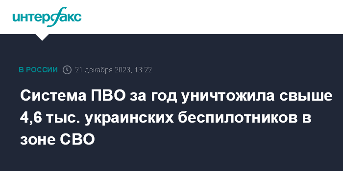 Система ПВО за год уничтожила свыше 4,6 тыс. украинских беспилотников в зоне СВО
