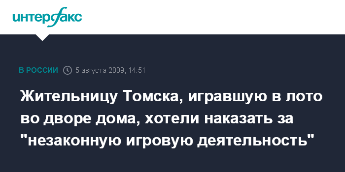 Как сообщалось, патрульно-постовая служба в последних числах июля составила протокол по факту игры в лото жительницей Томска во дворе дома. Милиционеры пояснили, что в соответствии с недавно принятым Кодексом Томской области об административных правонарушениях, гражданка Пономарева занималась незаконной деятельностью.
