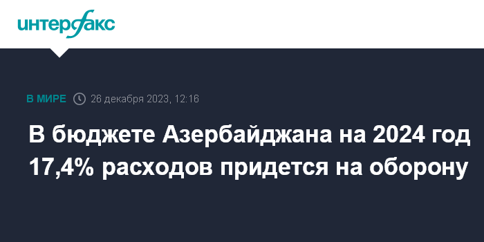 В бюджете Азербайджана на 2024 год 17,4% расходов придется на оборону