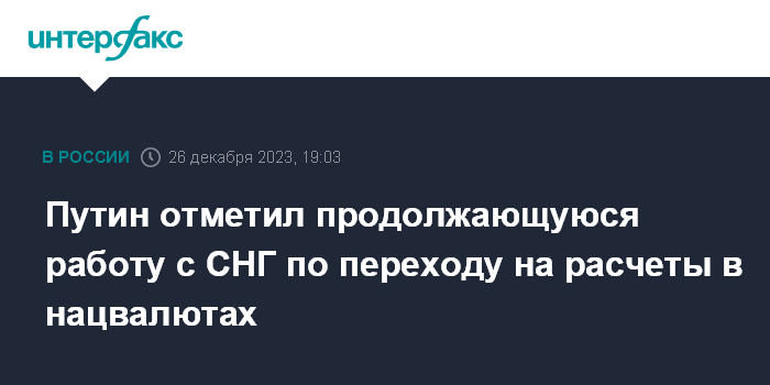Путин отметил продолжающуюся работу с СНГ по переходу на расчеты в нацвалютах