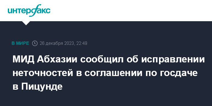 МИД Абхазии сообщил об исправлении неточностей в соглашении по госдаче в Пицунде