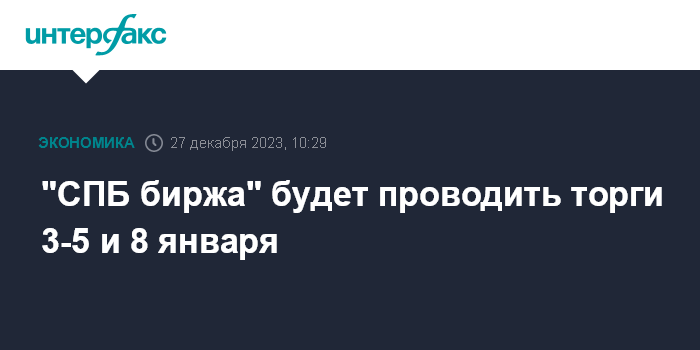 "СПБ биржа" будет проводить торги 3-5 и 8 января