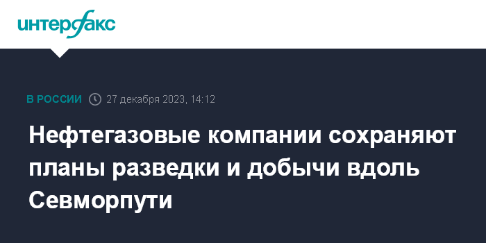 Москва. 27 декабря. INTERFAX.RU - Планы по разведке и добыче углеводородов на проектах вдоль Северного морского пути остаются неизменными, сообщил глава Роснедр Евгений Петров на пресс-конференции.