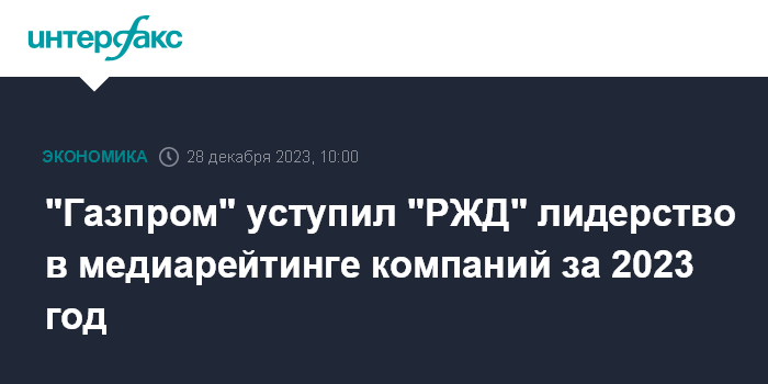 "Газпром" уступил "РЖД" лидерство в медиарейтинге компаний за 2023 год