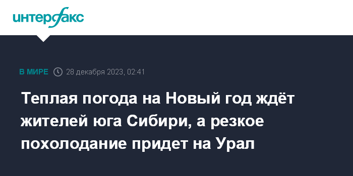 Теплая погода на Новый год ждёт жителей юга Сибири, а резкое похолодание придет на Урал