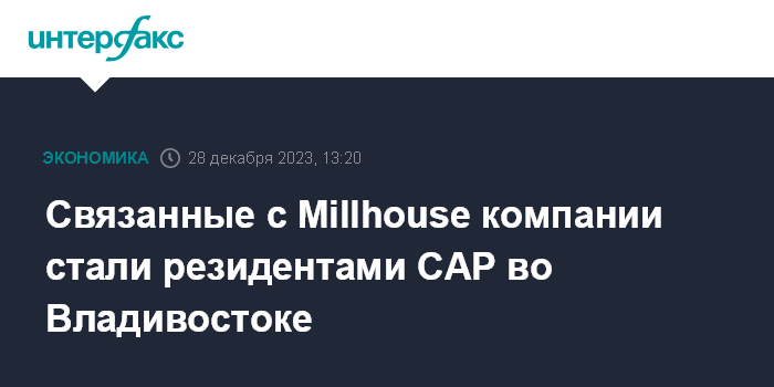 Связанные с Millhouse компании стали резидентами САР во Владивостоке