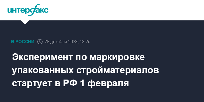 Эксперимент по маркировке упакованных стройматериалов стартует в РФ 1 февраля
