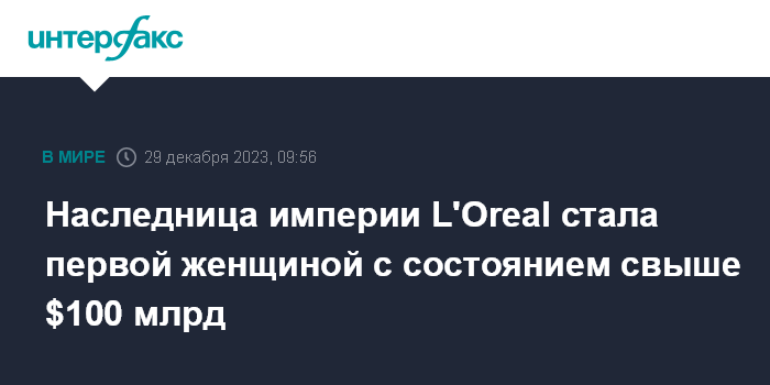 Наследница империи L'Oreal стала первой женщиной с состоянием свыше $100 млрд