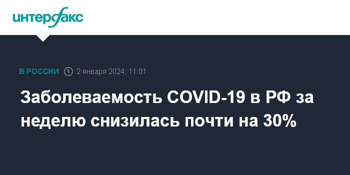 Москва. 2 января. INTERFAX.RU - Показатель заболеваемости коронавирусом в России за неделю с 25 по 31 декабря снизился по сравнению с предыдущей на 28,6%, сообщили во вторник в оперативном штабе по борьбе с коронавирусной инфекцией.