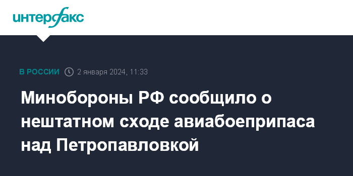 Минобороны РФ сообщило о нештатном сходе авиабоеприпаса над Петропавловкой