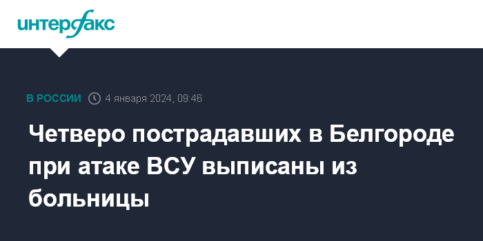 Москва. 4 января. INTERFAX.RU - Губернатор Белгородской области Вячеслав Гладков сообщил о состоянии здоровья пострадавших при массированной украинской атаке, которая произошла 30 декабря.