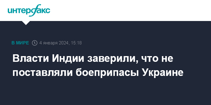 Москва. 4 января. INTERFAX.RU - Утверждения некоторых СМИ о поставках Индией артиллерийских боеприпасов на Украину неверны, заявил в четверг представитель индийского МИД Рандхир Джайсвал.