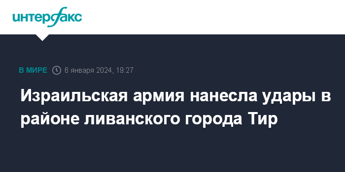 Москва. 6 января. INTERFAX.RU - Военные Армии обороны Израиля (ЦАХАЛ) нанесли удары по южным окрестностям ливанского города Тир, сообщает телеканал Al Jazeera.
