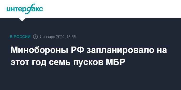 Москва. 7 января. INTERFAX.RU - Министерство обороны РФ сообщило, что в 2024 году Ракетные войска стратегического назначения (РВСН) осуществят семь учебных и испытательных пусков межконтинентальных баллистических ракет (МБР).