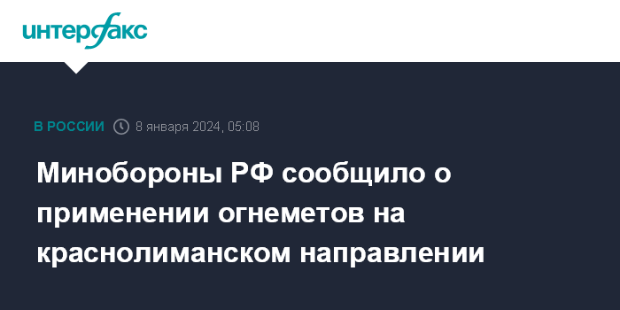 Минобороны РФ сообщило о применении огнеметов на краснолиманском направлении