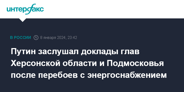 Путин заслушал доклады глав Херсонской области и Подмосковья после перебоев с энергоснабжением
