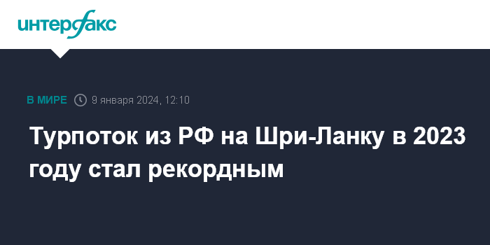 Москва. 9 января. INTERFAX.RU - Шри-Ланку в 2023 году посетили почти 200 тысяч туристов из России, это рекордный показатель за всю историю туризма из РФ в республику, сообщает во вторник Ассоциация туроператоров России (АТОР) со ссылкой на данные управления по развитию туризма Шри-Ланки.