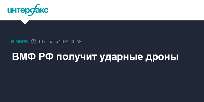 Москва. 10 января. INTERFAX.RU - Главнокомандующий ВМФ РФ Николай Евменов рассчитывает, что российская морская авиация будет усилена ударными беспилотниками "Охотник" и "Иноходец".