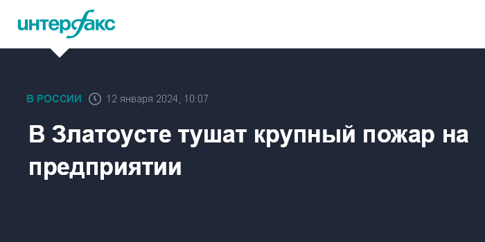 Москва. 12 января. INTERFAX.RU - В Златоусте произошел пожар на предприятии, сначала там загорелся деревообрабатывающий цех, затем огонь перекинулся на кровлю административного здания, следует из сообщений МЧС.