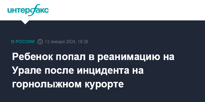Ребенок попал в реанимацию на Урале после инцидента на горнолыжном курорте