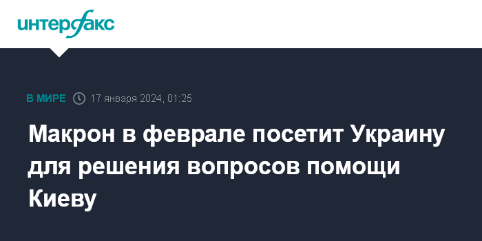 Москва. 17 января. INTERFAX.RU - Президент Франции Эммануэль Макрон объявил о своем предстоящем визите на Украину в феврале для решения вопросов помощи Киеву.