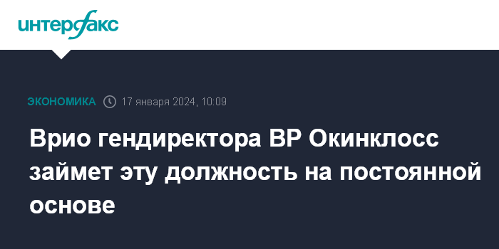 Врио гендиректора BP Окинклосс займет эту должность на постоянной основе