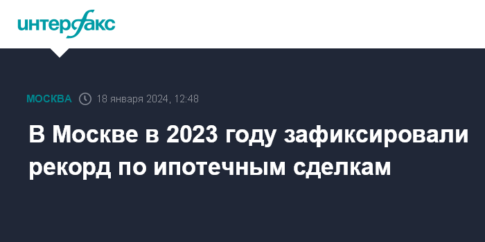 Москва. 18 января. INTERFAX.RU - Управление Росреестра по Москве зафиксировало рекордный показатель ипотечных сделок в городе в 2023 году, сообщила пресс-служба ведомства.