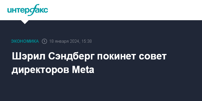 Москва. 18 января. INTERFAX.RU - Шэрил Сэндберг покидает совет директоров Meta Platforms (признана в России экстремистской организацией и запрещена), в которой она проработала почти 16 лет.