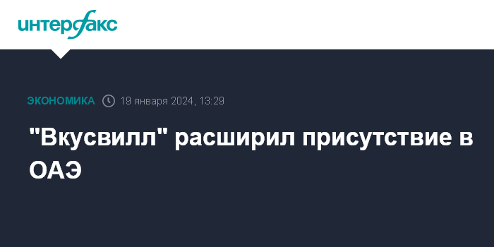 Москва. 19 января. INTERFAX.RU - Ритейлер "Вкусвилл" расширил свое присутствие в ОАЭ, говорится в сообщении компании.