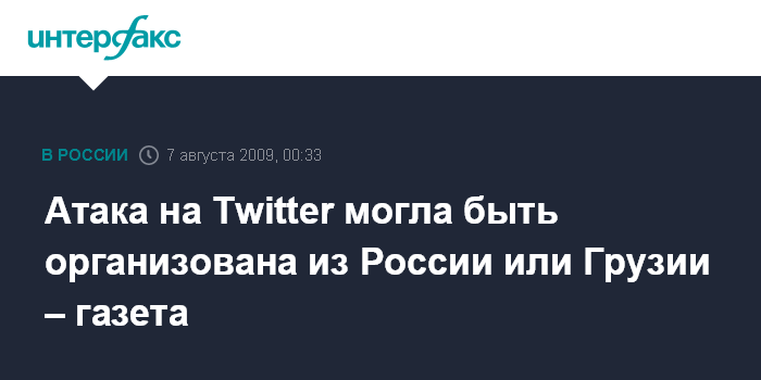 Москва. 7 июля. INTERFAX.RU – Хакерские атаки на сервис микроблогов Twitter, ставшие причиной его недоступности в течение нескольких часов в четверг, могли быть организованы из России или Грузии, сообщает американское издание The New York Times. Со ссылкой на Билла Вудкока, одного из директоров Packet Clearing House, некоммерческой организации, занимающейся интернет-трафиком, в публикации издания говорится, что "атака могла стать следствием конфликта между Россией и Грузией. "Определить, кто именно стал инициатором атаки, пока точно нельзя, но, предположительно, одна сторона начала пропагандистскую деятельность, а другая, заметив это, атаковала сервис", - отмечает автор статьи.