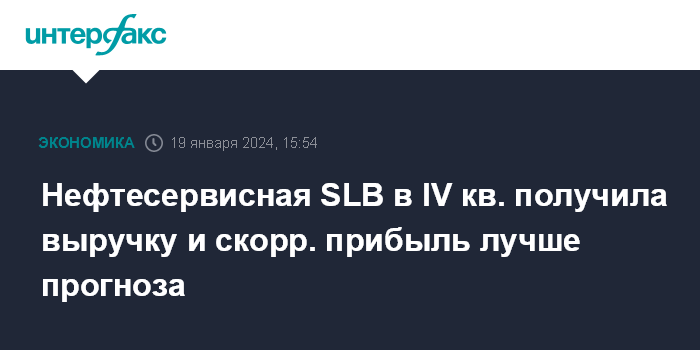 Москва. 19 января. INTERFAX.RU - Американская нефтесервисная компания SLB (ранее известная как Schlumberger) в четвертом квартале 2023 года увеличила чистую прибыль на 4%, при этом скорректированный показатель и выручка превзошли ожидания рынка.