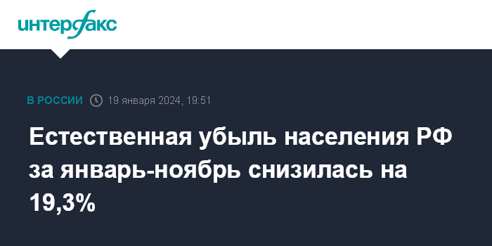 Естественная убыль населения РФ за январь-ноябрь снизилась на 19,3%