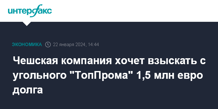Чешская компания хочет взыскать с угольного "ТопПрома" 1,5 млн евро долга