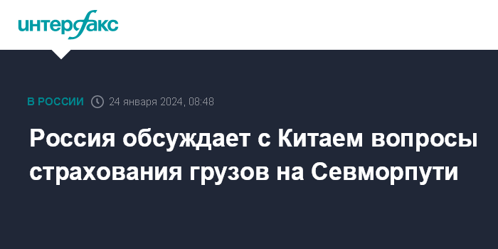 Россия обсуждает с Китаем вопросы страхования грузов на Севморпути