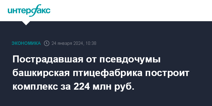 Пострадавшая от псевдочумы башкирская птицефабрика построит комплекс за 224 млн руб.