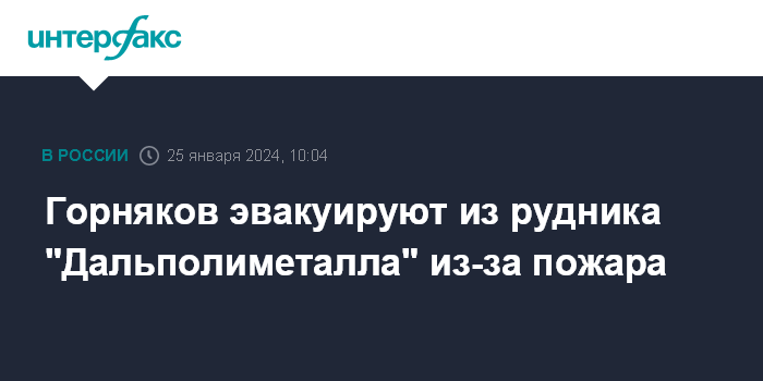 Горняков эвакуируют из рудника "Дальполиметалла" из-за пожара