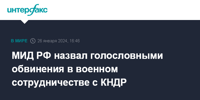 МИД РФ назвал голословными обвинения в военном сотрудничестве с КНДР