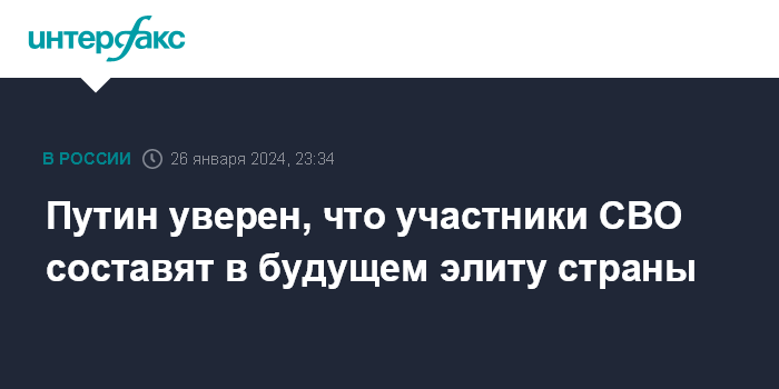 Москва. 26 января. INTERFAX.RU - Президент РФ Владимир Путин рассказал, кого он видит в будущем в качестве элиты страны - в нее должны войти участники СВО, а не модных, "голых" вечеринок.