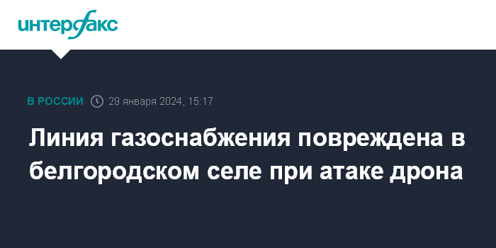 Москва. 29 января. INTERFAX.RU - Губернатор Белгородской области Вячеслав Гладов сообщил о повреждении линии газоснабжения при атаке дрона по территории Волоконовского района.
