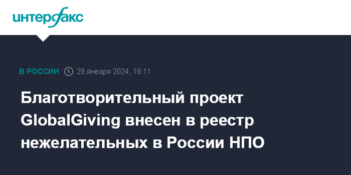 Благотворительный проект GlobalGiving внесен в реестр нежелательных в России НПО