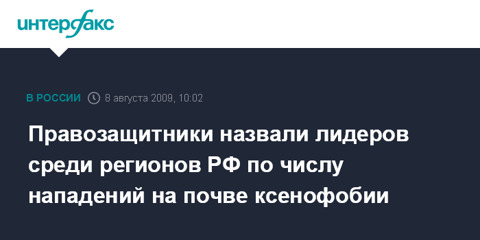 Москва. 8 августа. INTERFAX.RU - Почти 40 человек погибли в этом году в России из-за нападений, связанных с национальной неприязнью, сообщили правозащитники.