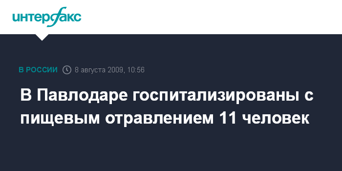 Павлодар. 8 августа. INTERFAX.RU - В Павлодаре (адмцентр Павлодарской области Казахстана, на севере) с пищевым отравлением госпитализированы 11 человек, в том числе трое детей, сообщили агентству "Интерфакс-Казахстан" в инфекционной больнице.