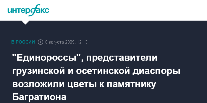 Москва. 8 августа. INTERFAX.RU - Представители "Единой России", грузинской и осетинской общин Москвы возложили цветы к памятнику полководца Петра Багратиона в честь подвига российских миротворцев в Южной Осетии в августе прошлого года и заявили, что нет вражды между русским и грузинским народами.