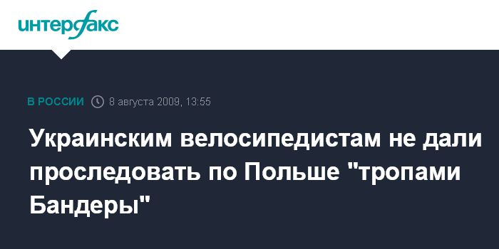 Киев. 8 августа. INTERFAX.RU - Участникам веломарафона "Европейскими тропами Степана Бандеры" накануне отказали во въезде на территорию Польши в связи с неправомерным оформлением виз, сообщает СМИ.
