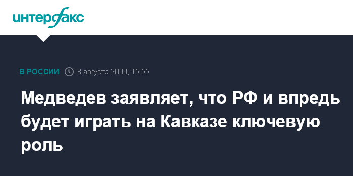Медведев заявляет, что РФ и впредь будет играть на Кавказе ключевую роль